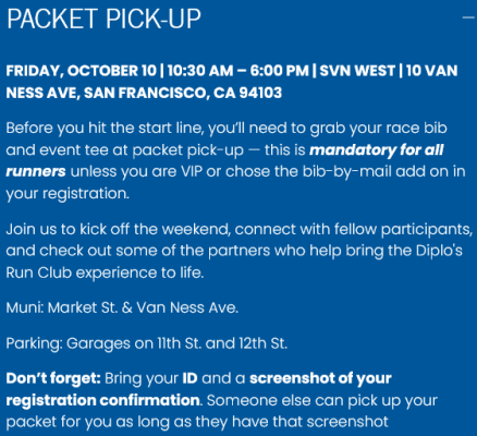 Volunteer at Diplo's Run Club San Francisco Packet Pick-Up Session. You must register directly with the event at THIS LINK. Please select "Packet Pick-Up Shift 1" for Friday, October 10, 2025.